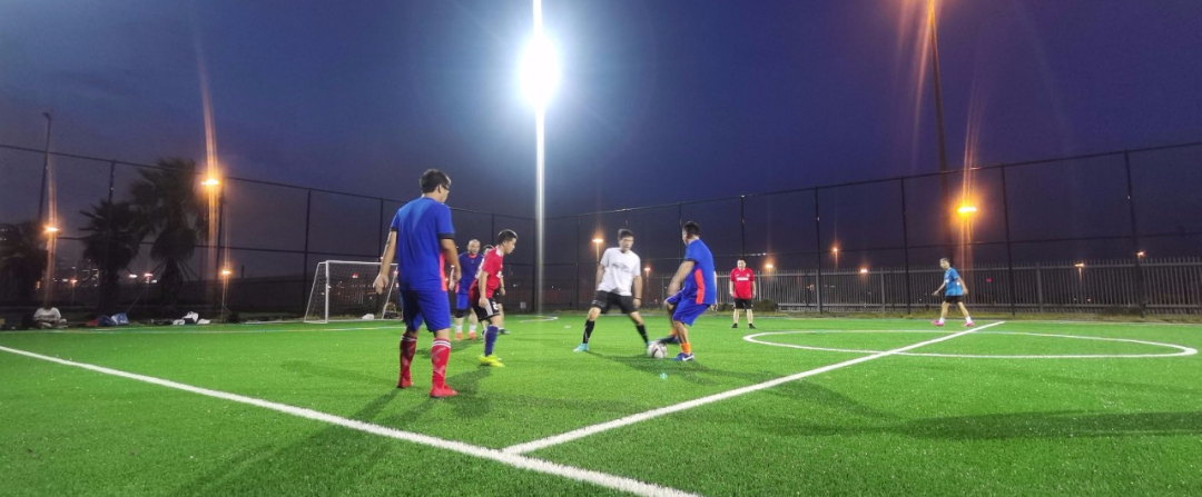 球场上,大家本着“友谊第一、比赛第二”的态度在球场上奋力角逐。比赛过程中,在张琳总的带领下,球队配合默契、跑动积极、积极拼抢,抢断、过人、射门、扑救,一个接一个的精彩动作博得了一阵又一阵激烈的欢呼声与热烈的掌声。整场比赛,双方各有攻守、大开大合,比赛紧张而激烈,精彩场面层出不穷,双方在拼搏中彰显友谊,从交流里获得快乐。