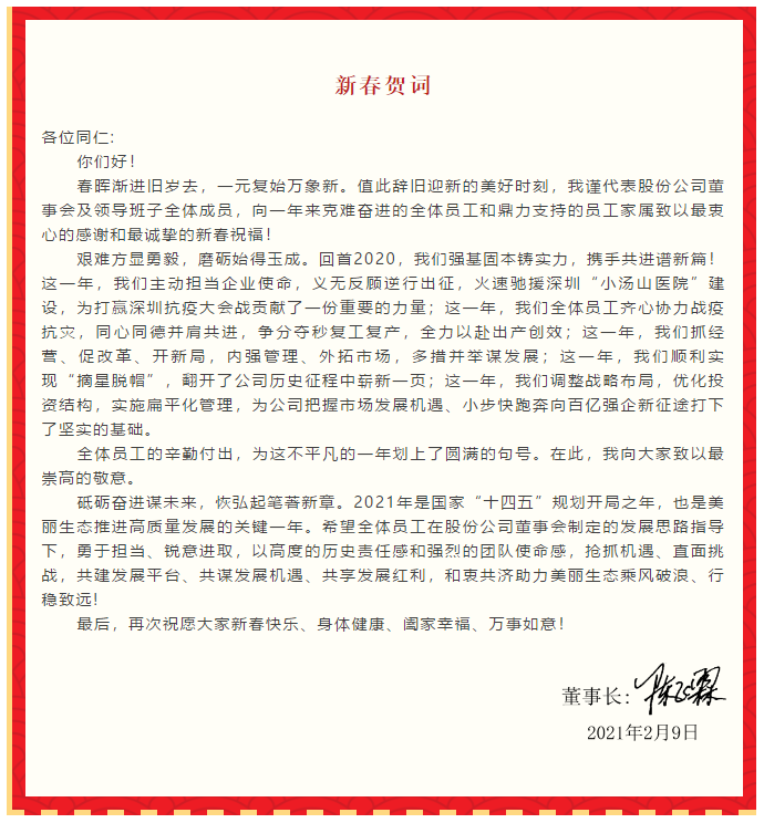 新春祝福丨董事长致新春贺词
